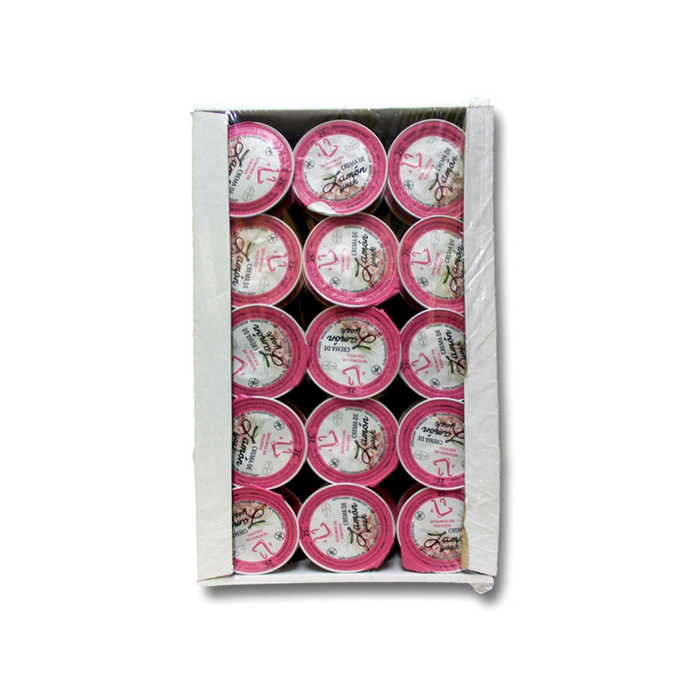✔ Textura cremosa y sabor suave a jamón york. ✔ Ideal para hostelería, desayunos y meriendas. ✔ Formato monodosis individual, higiénico y práctico. ✔ Caja de 30 unidades de 25 g cada una.